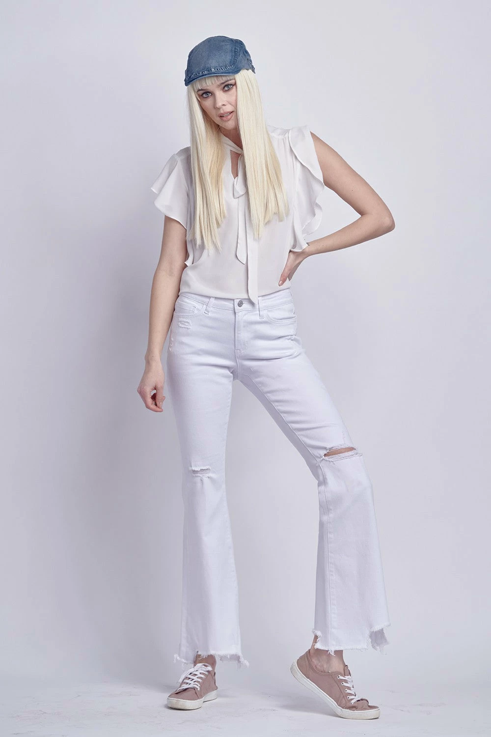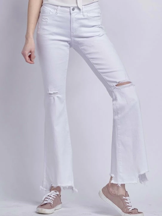 Flying Monkey Bottoms Hudson MR Distressed White Flare Jean