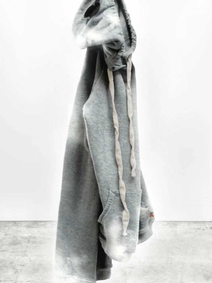 Unisex BLEACHOUT pullover hoodie in heather bleachout with custom bleach process (highs and lows) and classic black “FREECITYDOVE” print on hood.