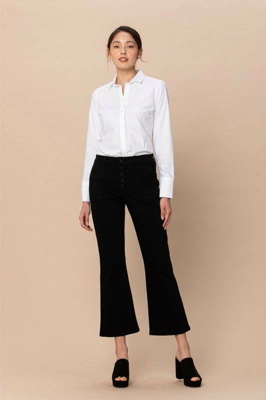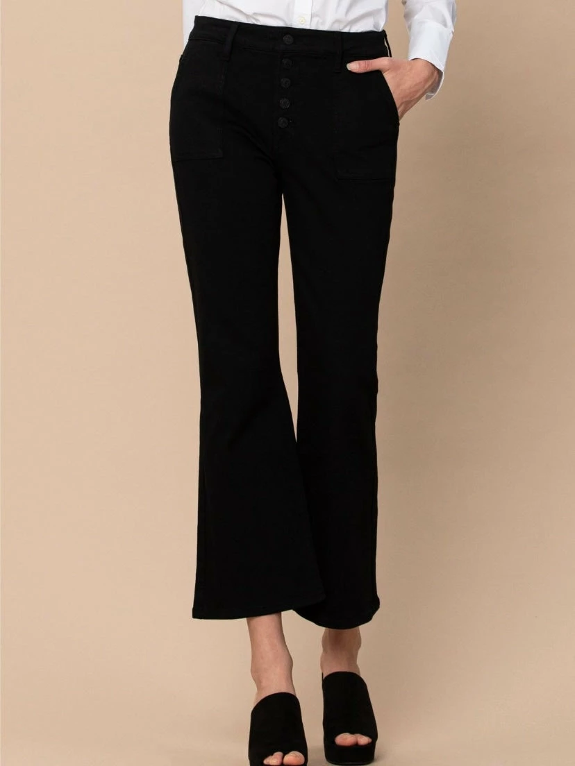 Hidden Jeans Happi High Rise Black Utility Crop Flare Jean Bottoms