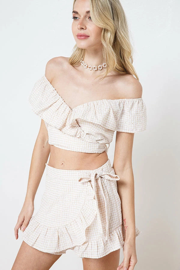 ILLA ILLA Joelle Taupe Seersucker Set Tops