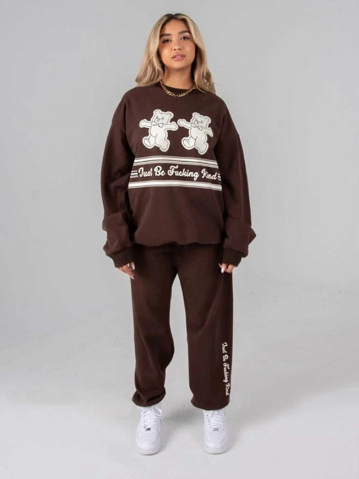 - ‘Just be f***ing kind’ screen-printed white on down side of left leg