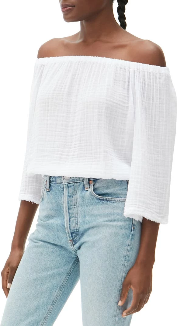 Michael Stars Isabel Gauze White Off The Shoulder Top Tops