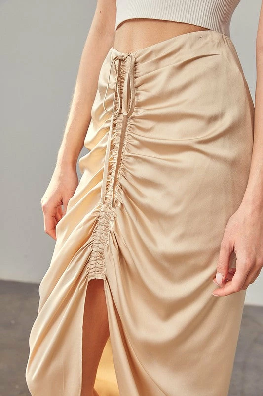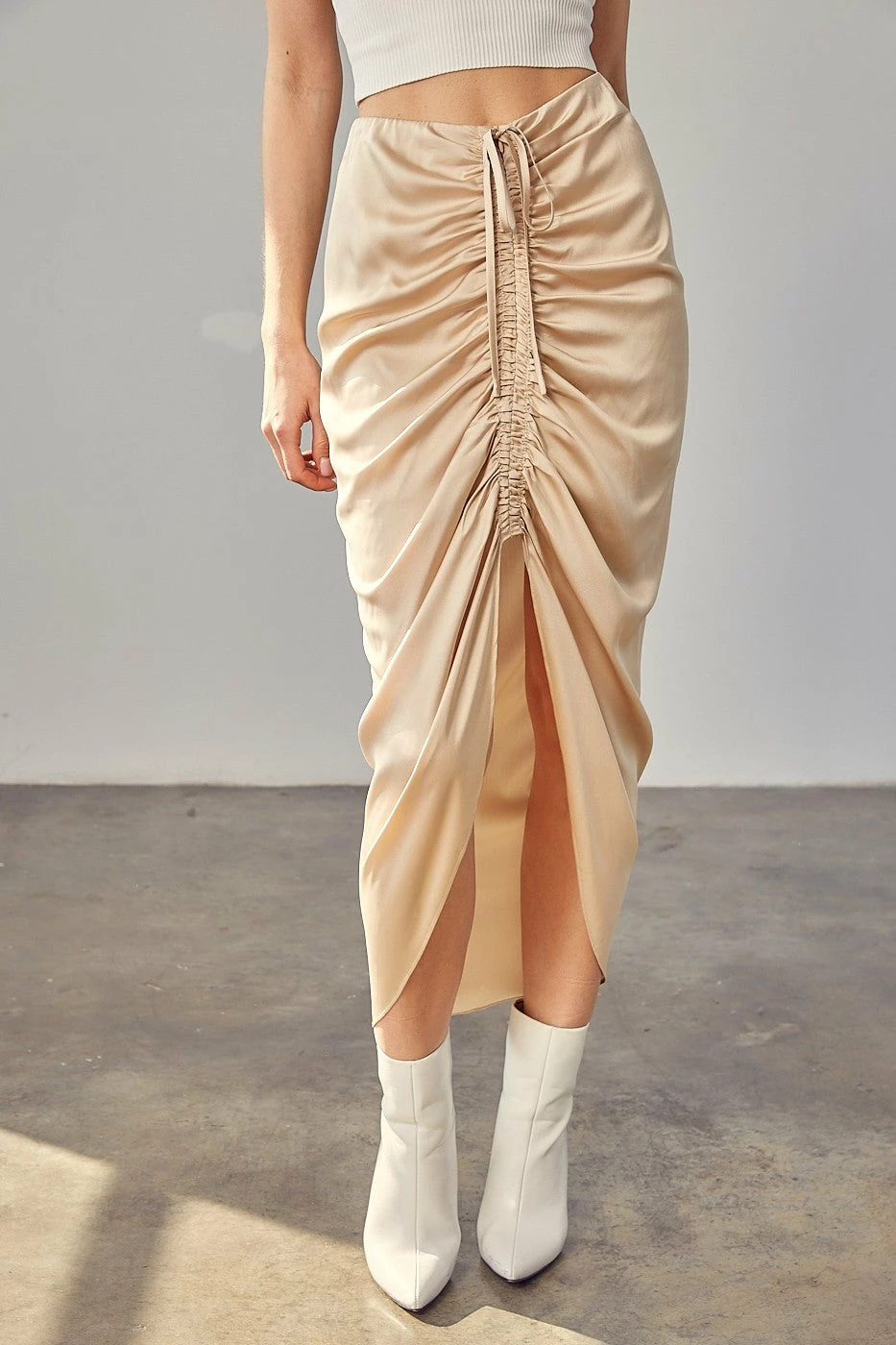 Mustard Seed Sonia Ruched Champagne Midi Skirt Bottoms