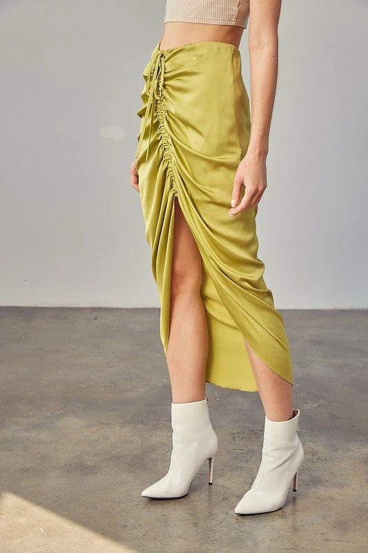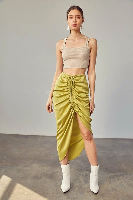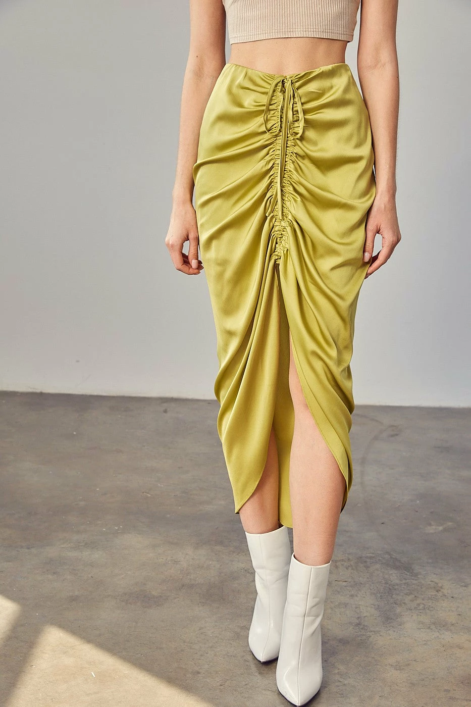 Mustard Seed Sonia Ruched Chartreuse Midi Skirt