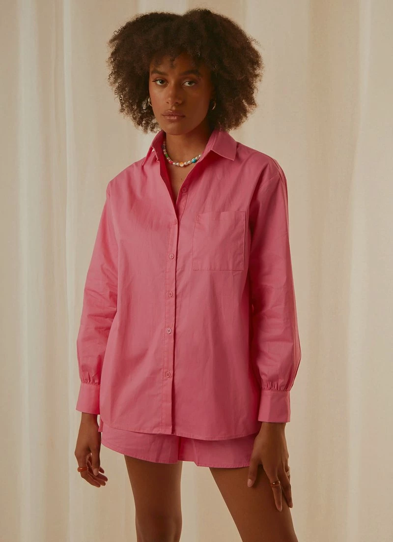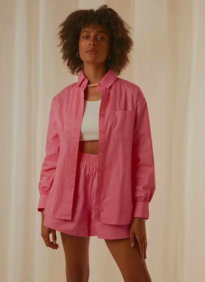 Hello, we’re obsessed! Introducing our Daydreams Shirt, your new fave wardrobe staple. We Love this thrown over a tank and paired with denim jeans, or style it back with the matching Roaming Magenta Shorts.