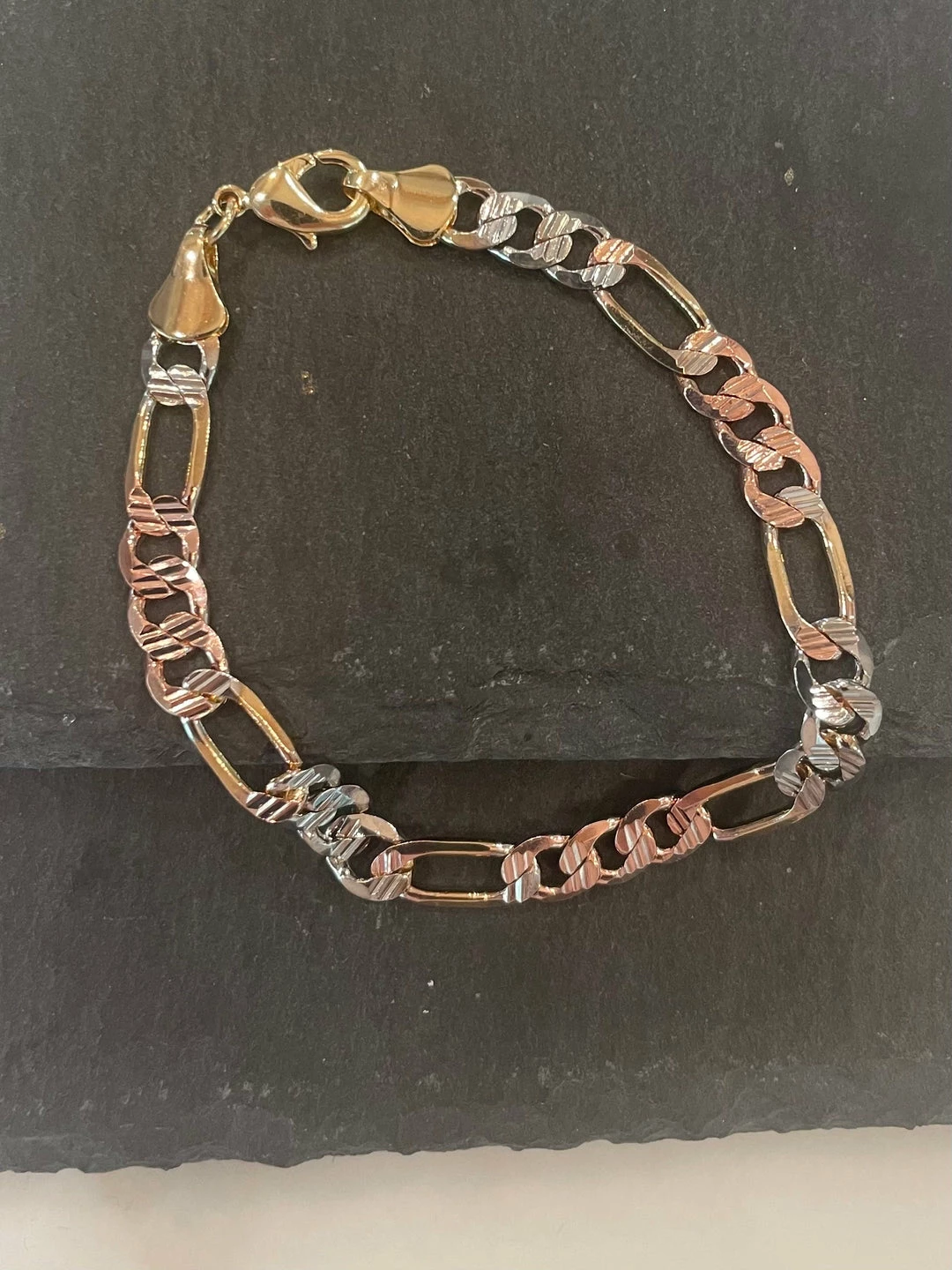 Tri color cuban link gold filled bracelet with 14k gold plating 6.5″ .