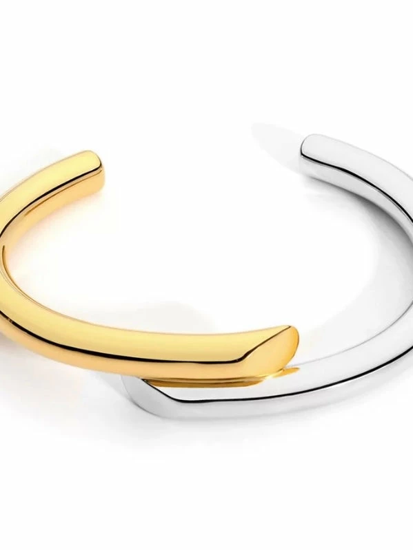 2 tone mod cuff bracelet in gold plated stainless steel.
