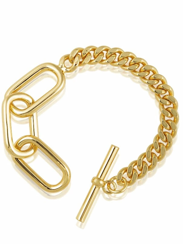 Multi link style bracelet w toggle in 18k gold plated stainless steel