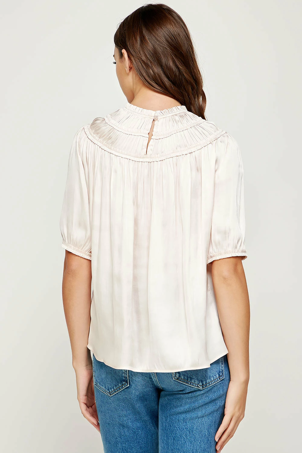 Strut And Bolt Tops Bonita Puff Sleeve Pink Satin Top