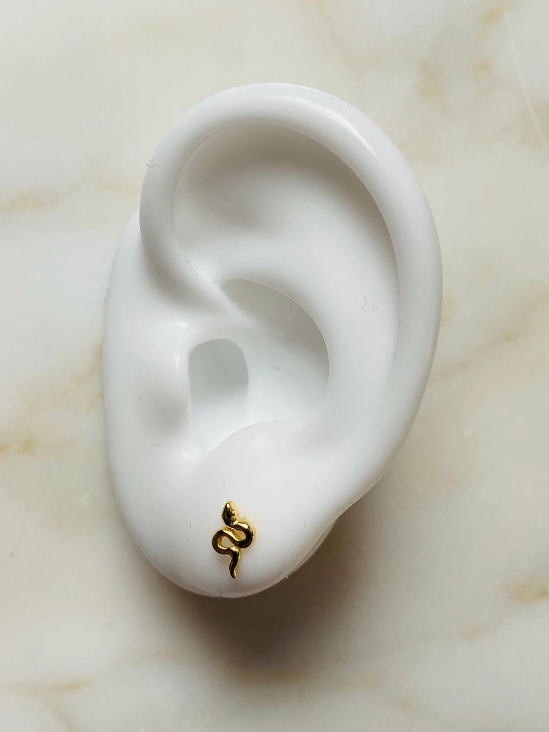 Sterling silver snake earring stud. 5/16″tall 14k gold plate or rhodium plate