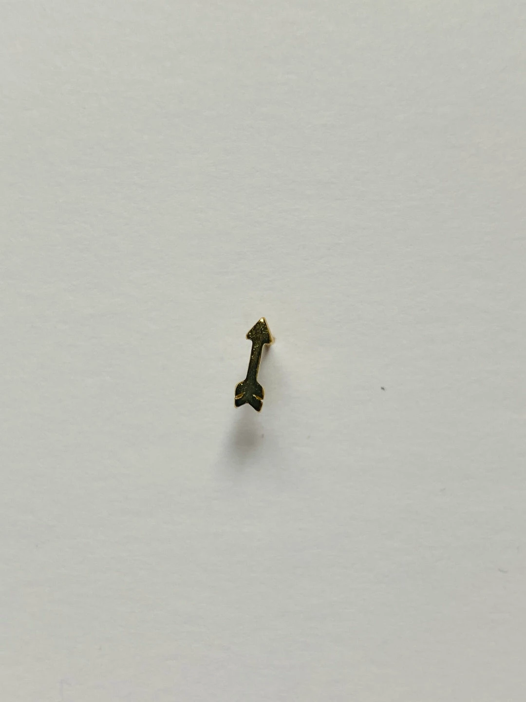 Sterling silver arrow earring stud. 1/4″ tall. 14k gold plate.