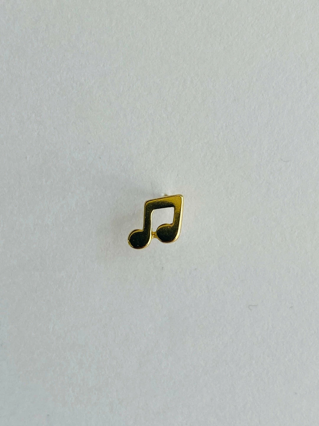 Sterling silver musical note earring stud. 3/16″ diameter 14k gold plate or rhodium plate.