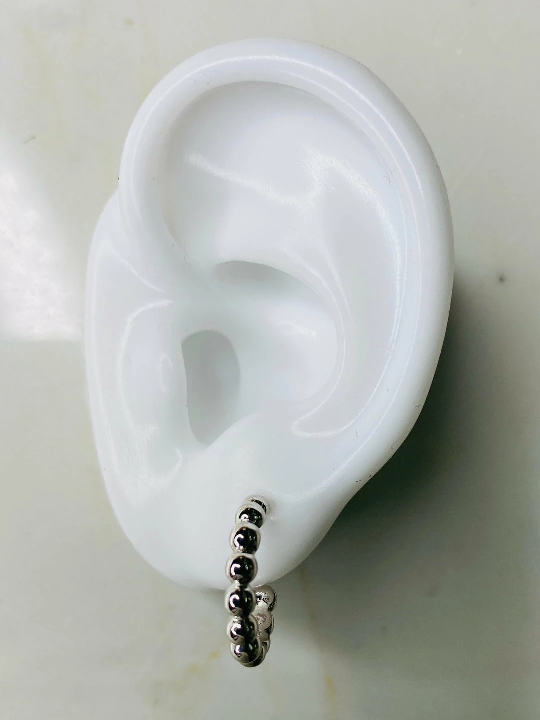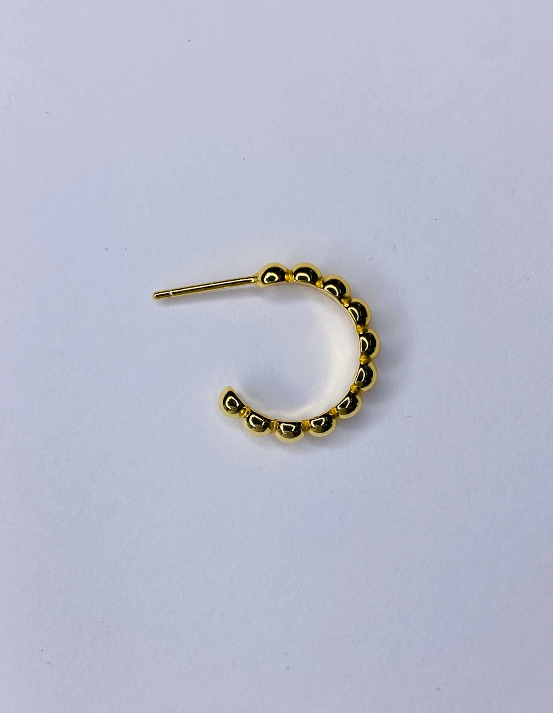 Sterling silver open hoop stud. 3/8″ diameter. 14k gold plate or rhodium plate.
