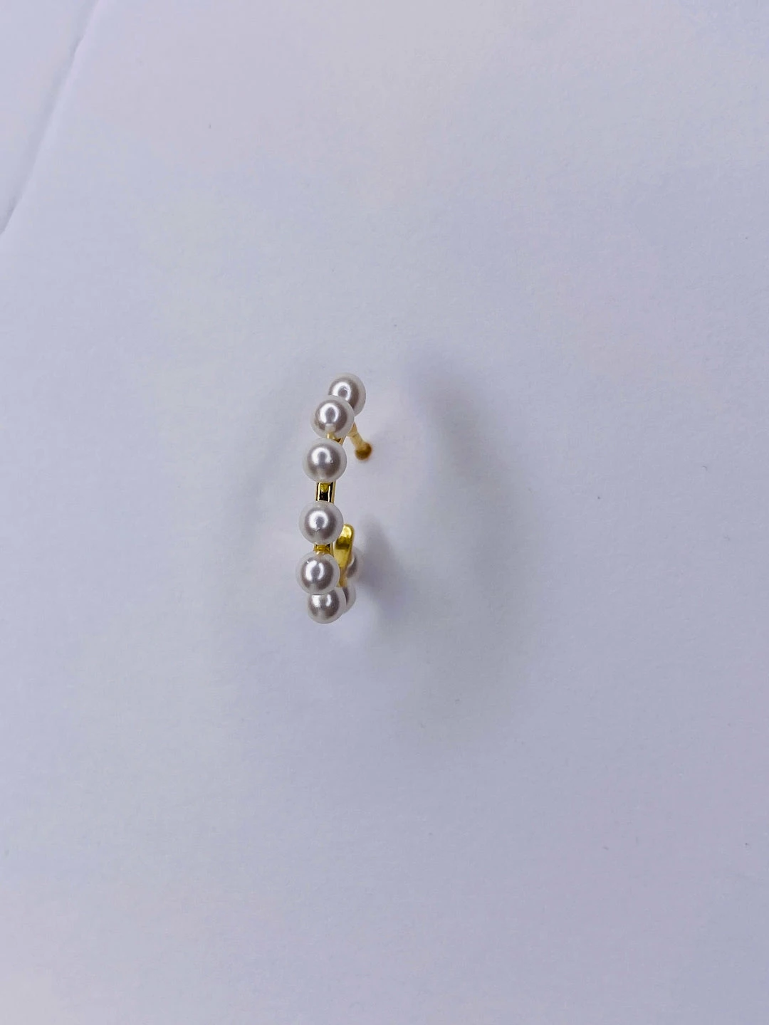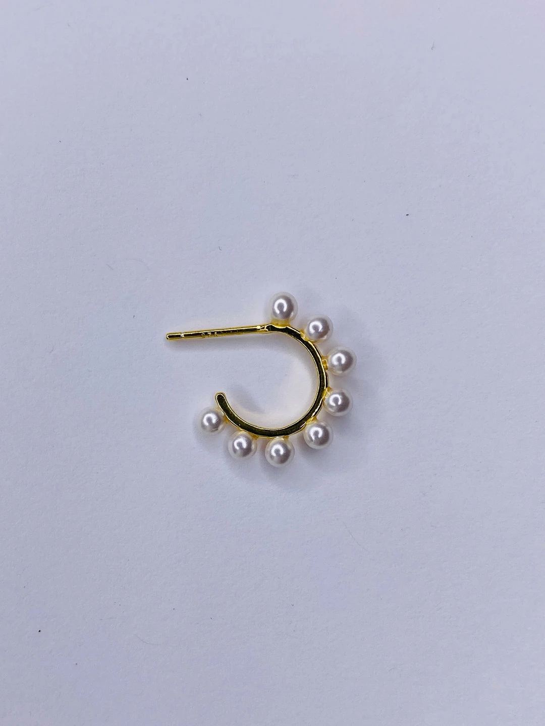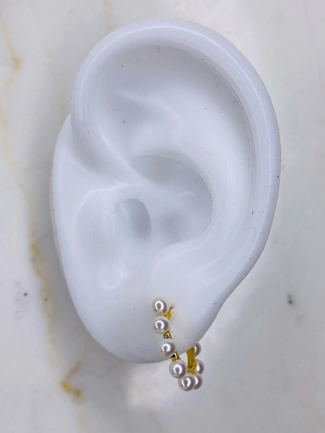 Sterling silver 3/4 huggy pearl hoop stud. 3/4″ diameter. 14k gold plate or rhodium plate