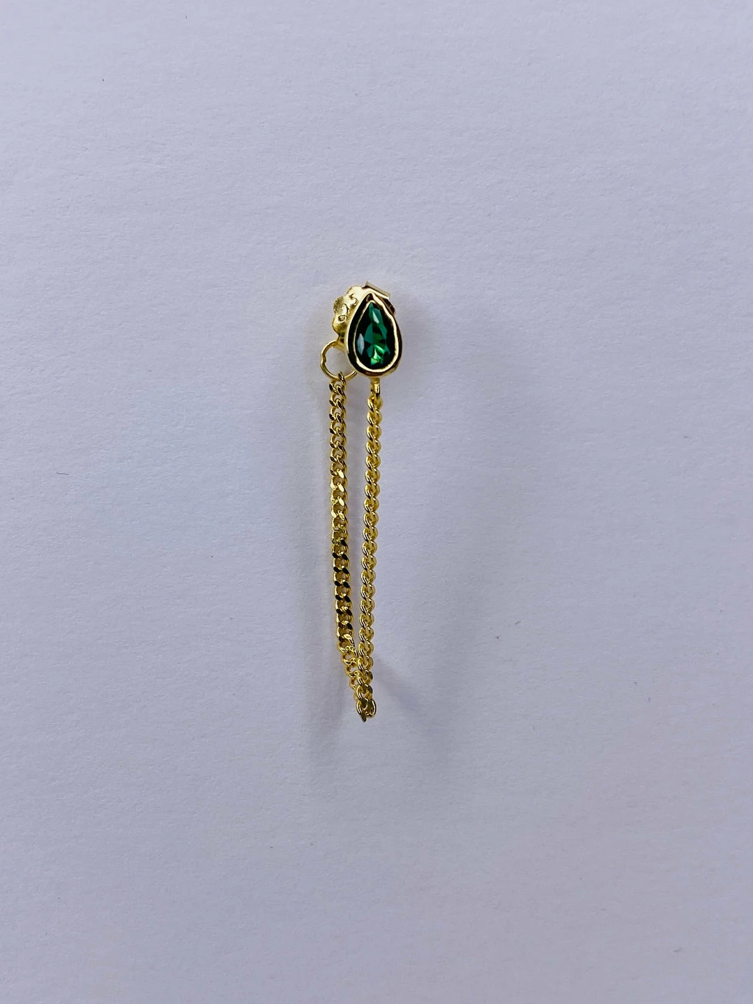 Sterling silver bezel set pear shape cz earring stud with curb chain detail. 1″ long. 14k gold/rhodium plate.