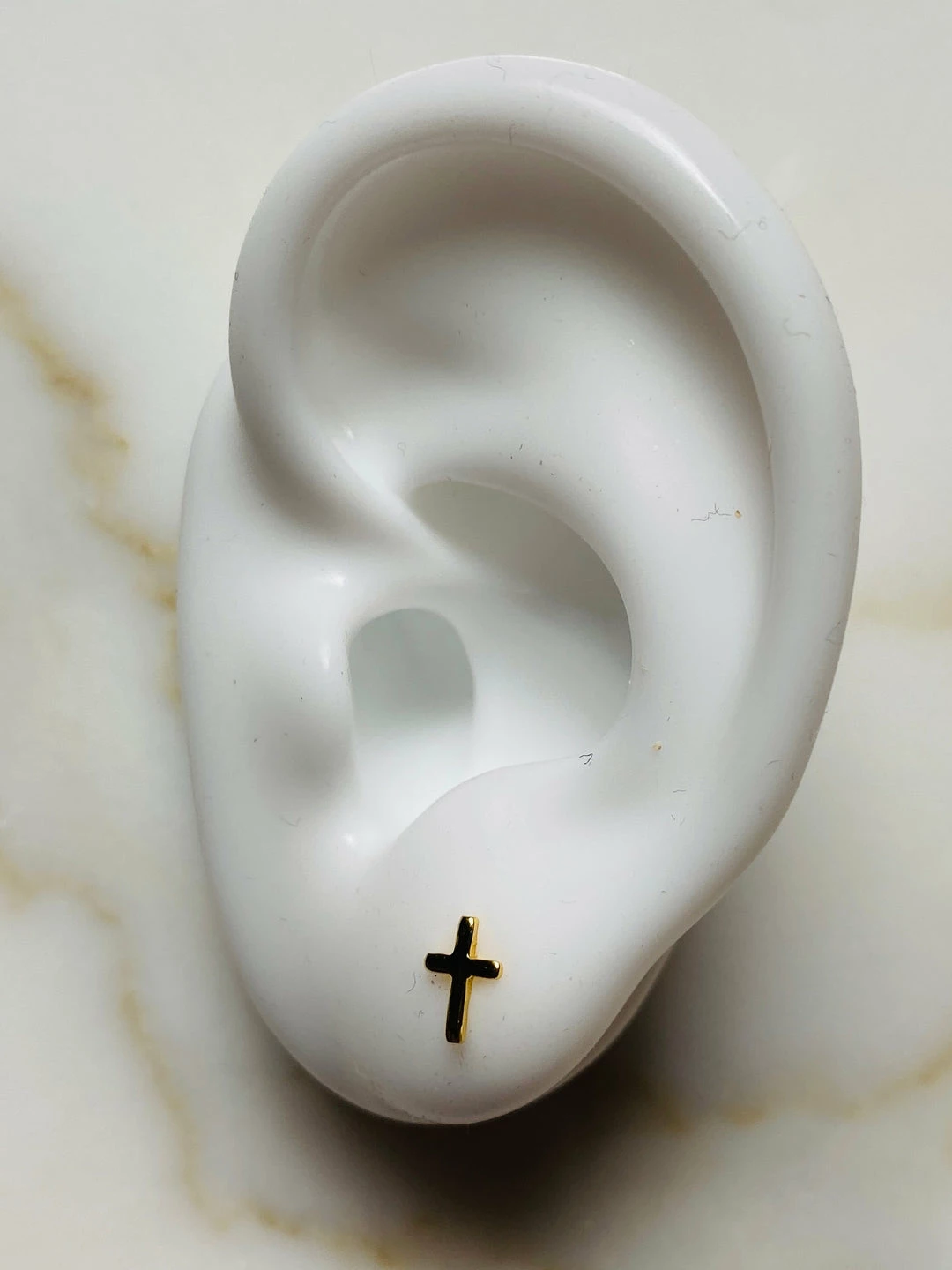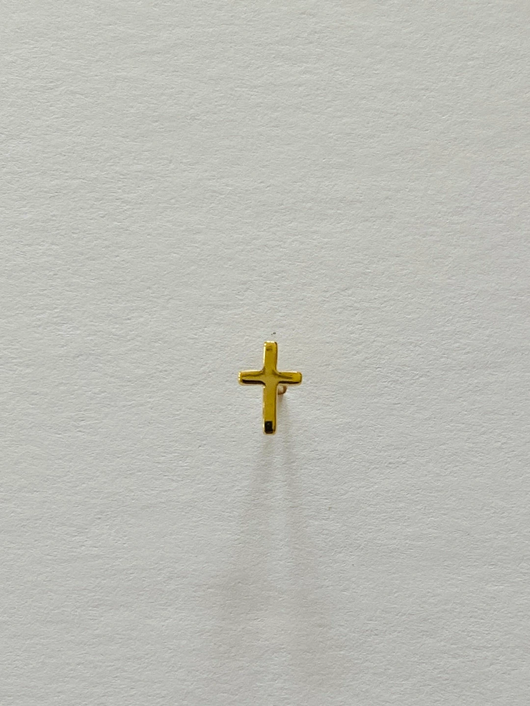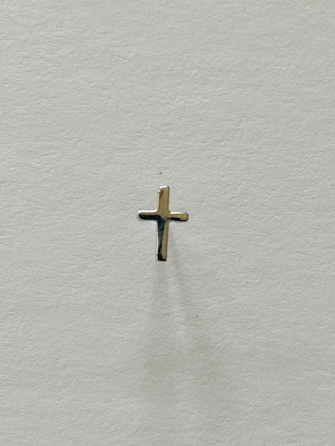 Sterling silver cross earring stud. 1/8″ x 1/4″ tall. 14k gold plate or rhodium plate