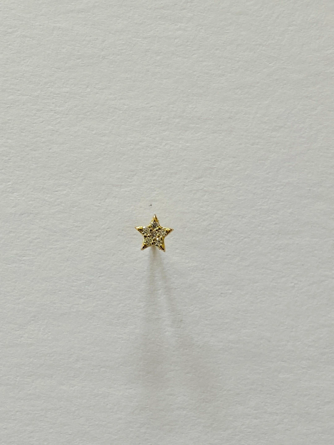 Sterling silver mini star shape earring stud set with pave cubic zirconia. 1/8″ wide 14k gold plate or rhodium plate