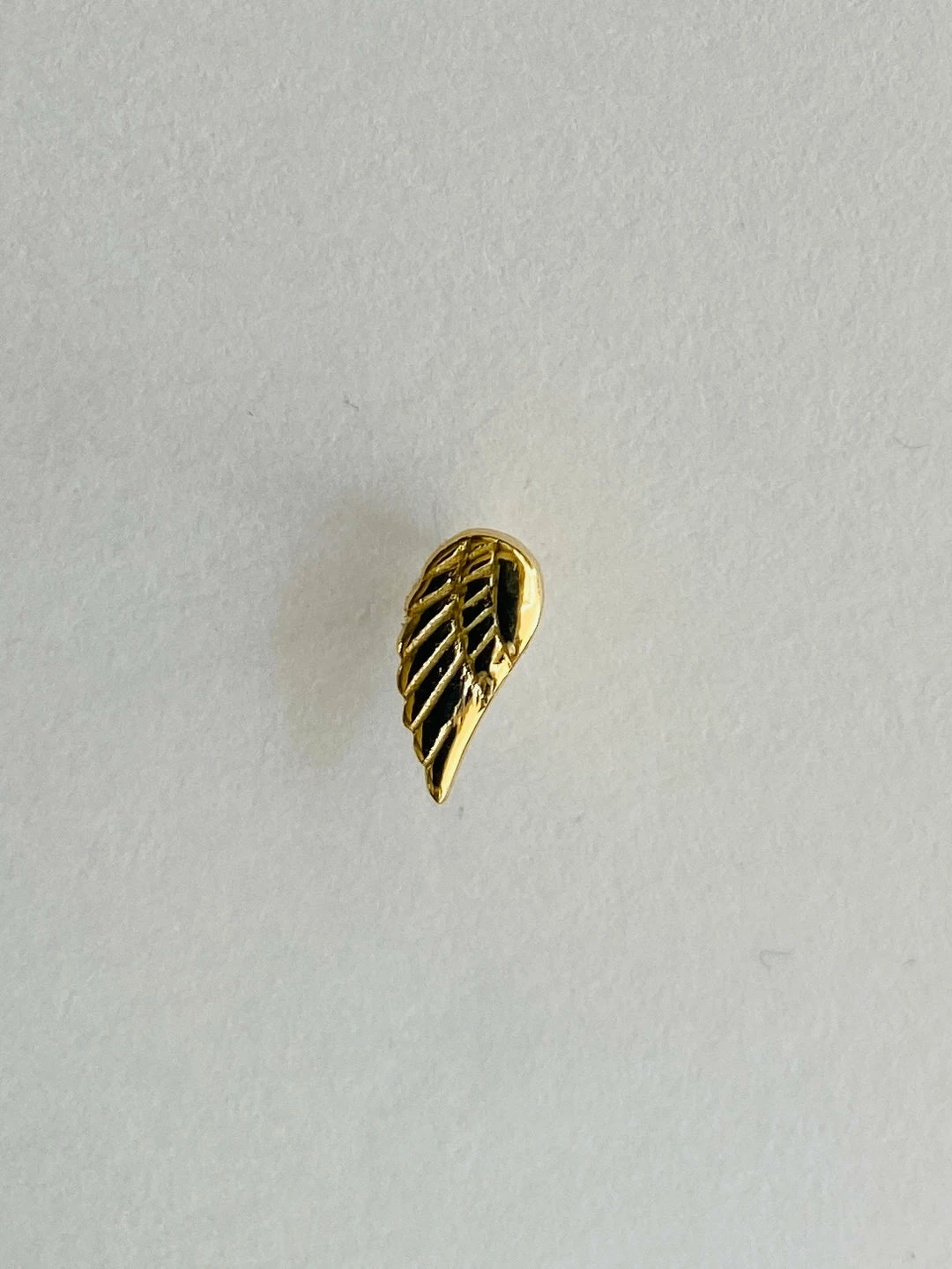 Sterling silver angel wing earring stud. 3/8″ wide. 14k gold plate or rhodium plate.