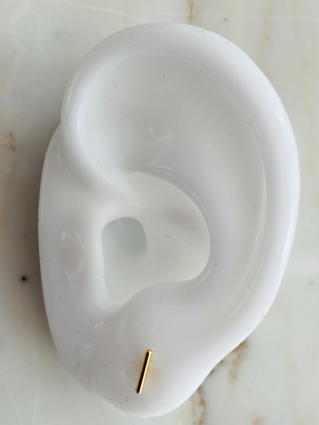 Sterling silver bar earring stud. 1/4″ tall. 14k gold plate or rhodium plate.