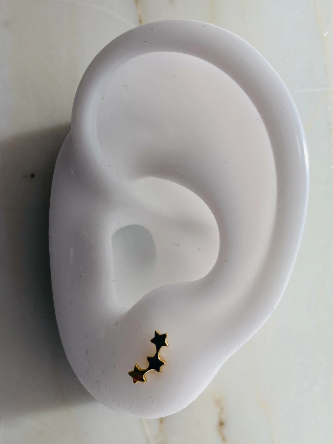 Sterling silver mini 3-star bar earring stud. 3/8″ tall. 14k gold plate or rhodium plate.