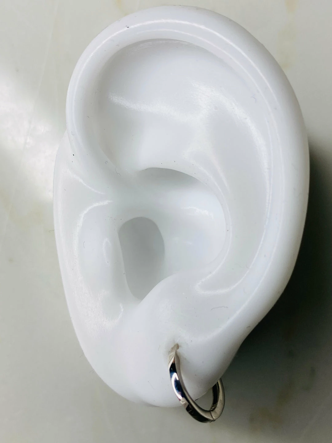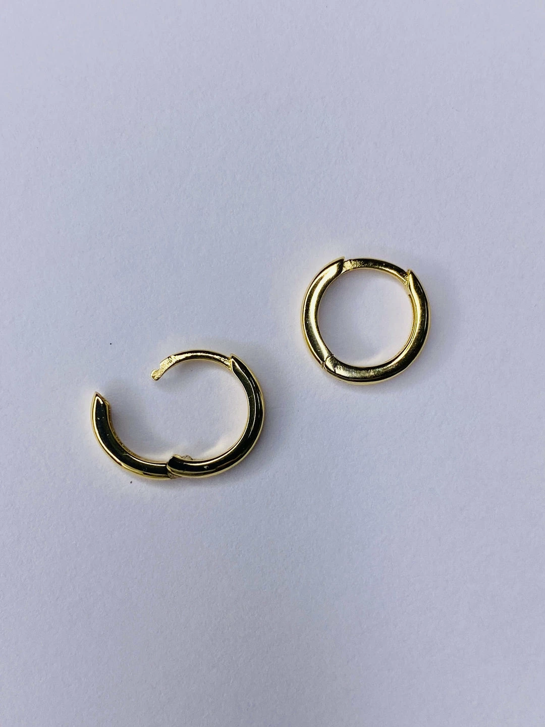 Sterling silver must have basic huggy hoop stud. 1/2″ Hinged for easy on/off. 14k gold plate or rhodium plate