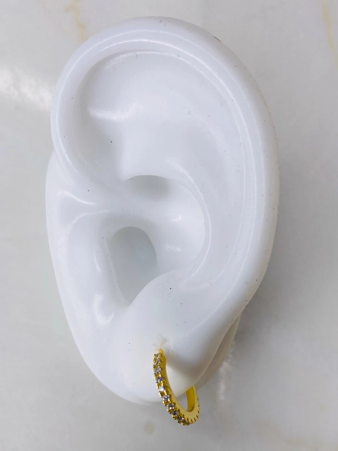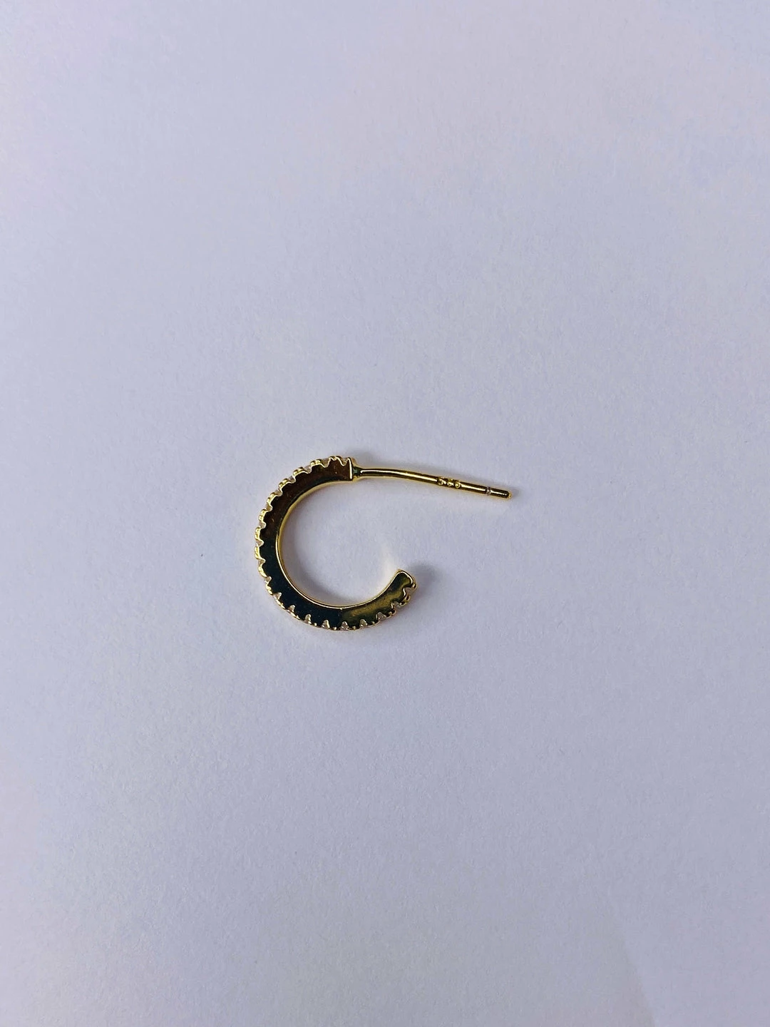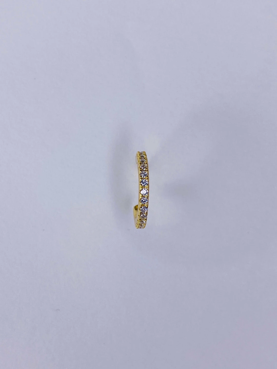 Sterling silver micro pave set cubic zirconia open hoop stud. 1/2″” diameter. 14k gold plate or rhodium plate.