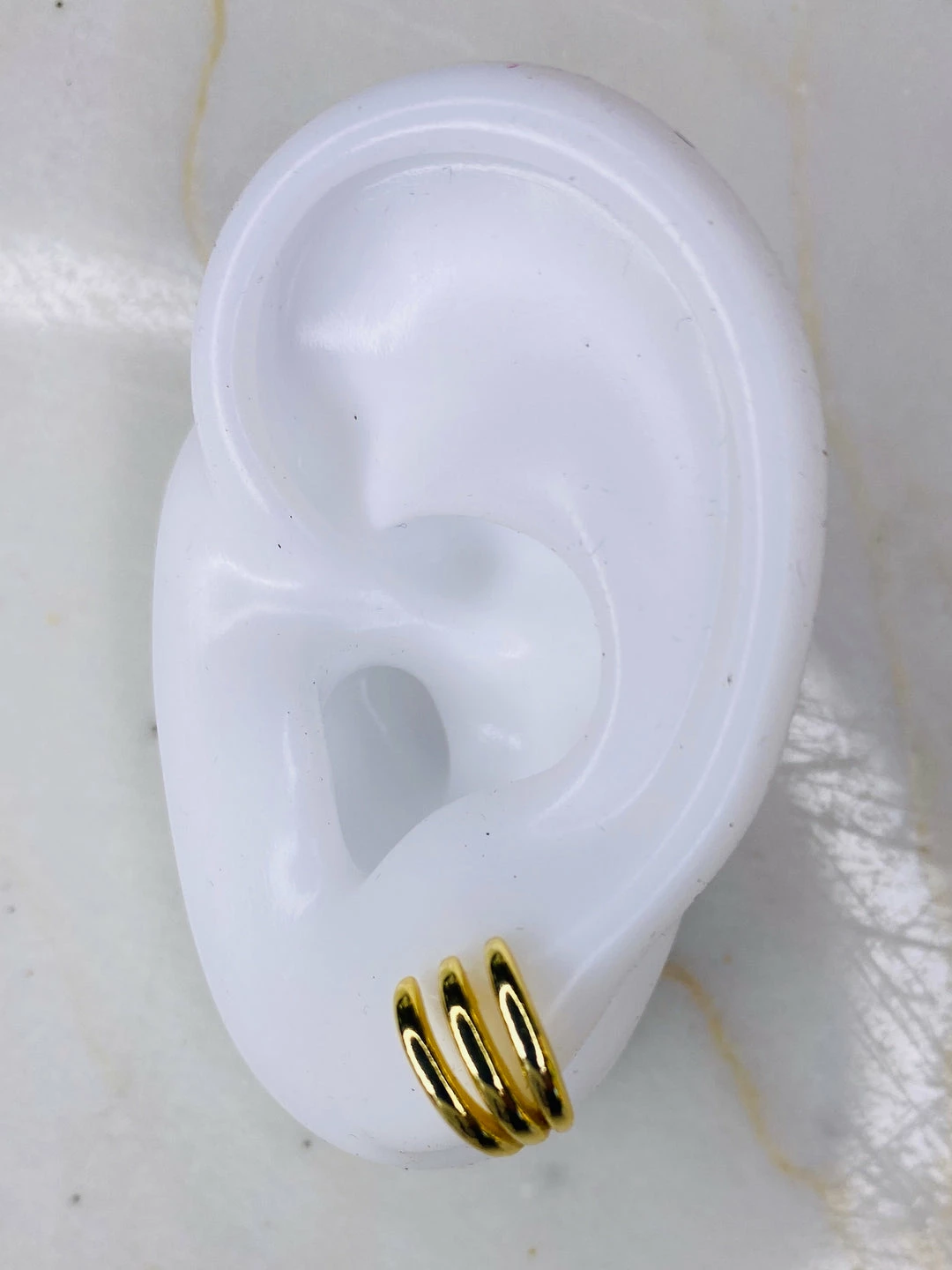 Sterling silver three bar half hoop stud. 1/4″wide x 1/2″ length. 14k gold plate or rhodium plate.