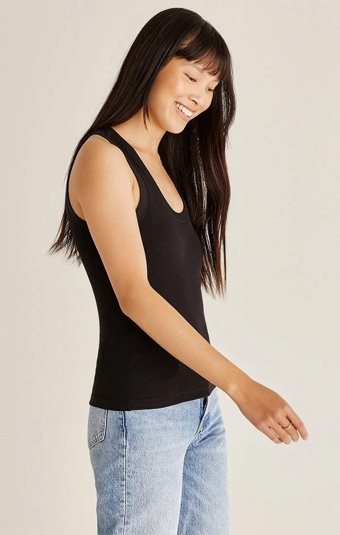 Our Sirena Rib Tank, with its familiar silhouette, is made in our soft feather rib and has become a go-to basic for our accounts. The Sirena Rib is an ideal piece under a jacket or just to wear on its own on those warmer weather days.
